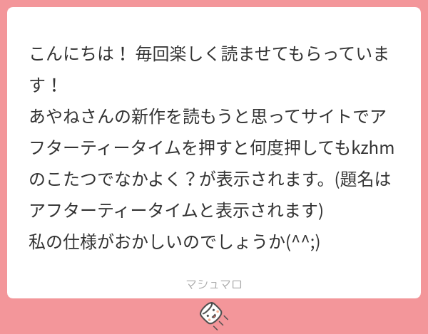 マシュマロでお知らせいただきありがとうございました!