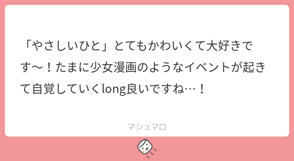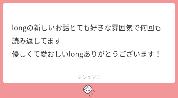 付き合ってなくてもまだまだいろんなlongが書けるんだな~! という気づきになりました^^